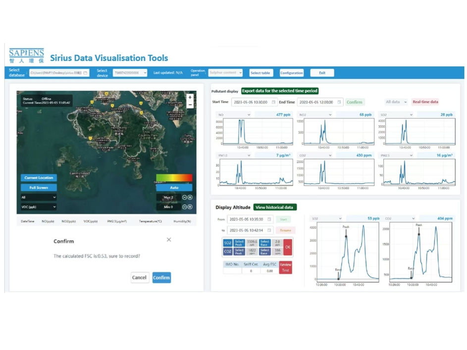 All-weather IR identification of ship plumes, IR automatic isometric plume tracking, LIDAR accurate emission chimney ranging.